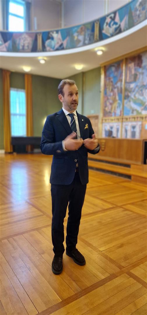 Det blir guidet omvisning med ordføreren hver hele time. Bli kjent med historien, kunsten og dekorasjonene og hør hva den historiske bygningen blir brukt til i dag. Arrangementet er gratis