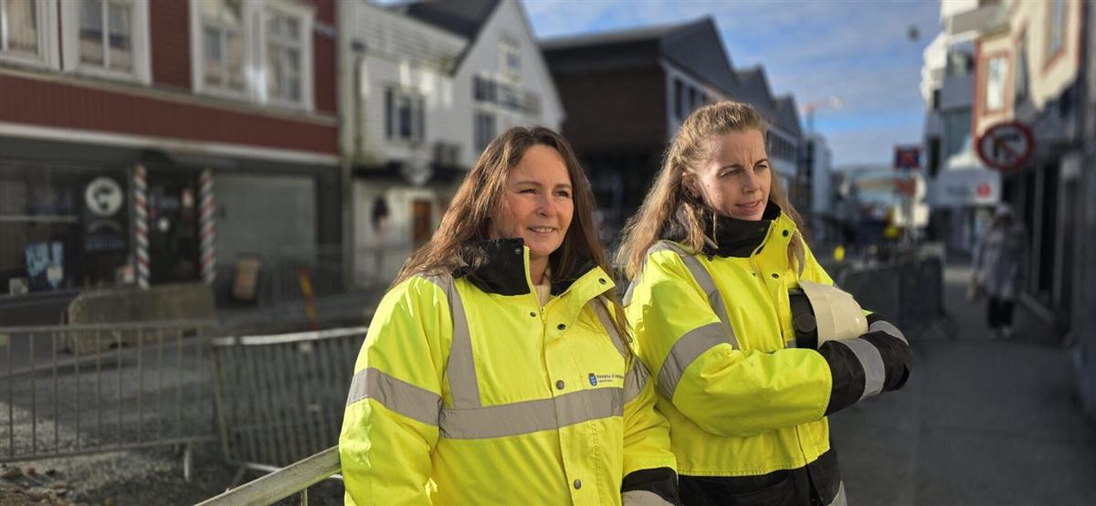 F.v. Mette Vikse og Sol Marlene Knutsen i Vann og avløp håper å være ferdig med prosjektet i Kaigata i løpet av våren.