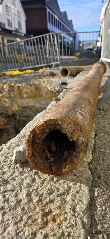 – Her så vi at ledningene var fra ca. 1905. De fungerte fremdeles, men vi vet at gamle rør gir økt risiko for brudd. Og det vil vi jo forebygge, forteller Mette Vikse i Vann og avløp.