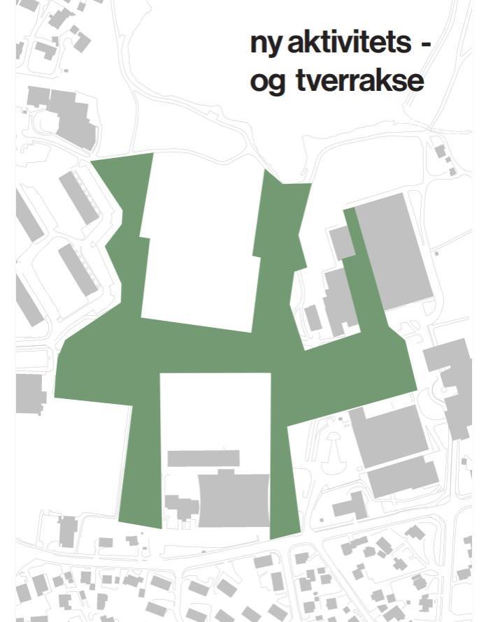 Kartet viser området vi ønsker å utvikle som en ny aktivitets- og tverrakse – et grønt rom for bevegelse, opphold og møte mellom idrett, skole og nærmiljø.