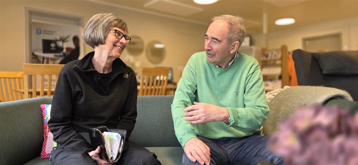 Vi tar en prat med de i visningsleiligheten for hjelpemidler på Havnaberg frisklivssentral og seniorsenter. Et passende sted for en samtale om nettopp det å rigge seg for alderdommen.