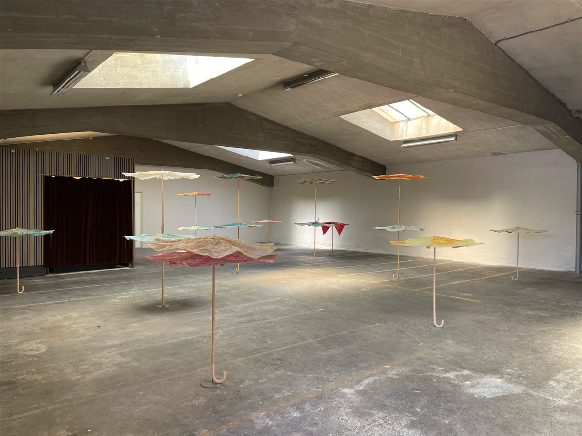 Lokasjonen på Terminalen på Flotmyr har hatt betydning for hvordan VEKSLE jobber. Det grove, fleksible rommet i betong – med god takhøyde og store porter – gir rom for større installasjoner, tredimensjonale arbeider og eksperimentelle uttrykk.