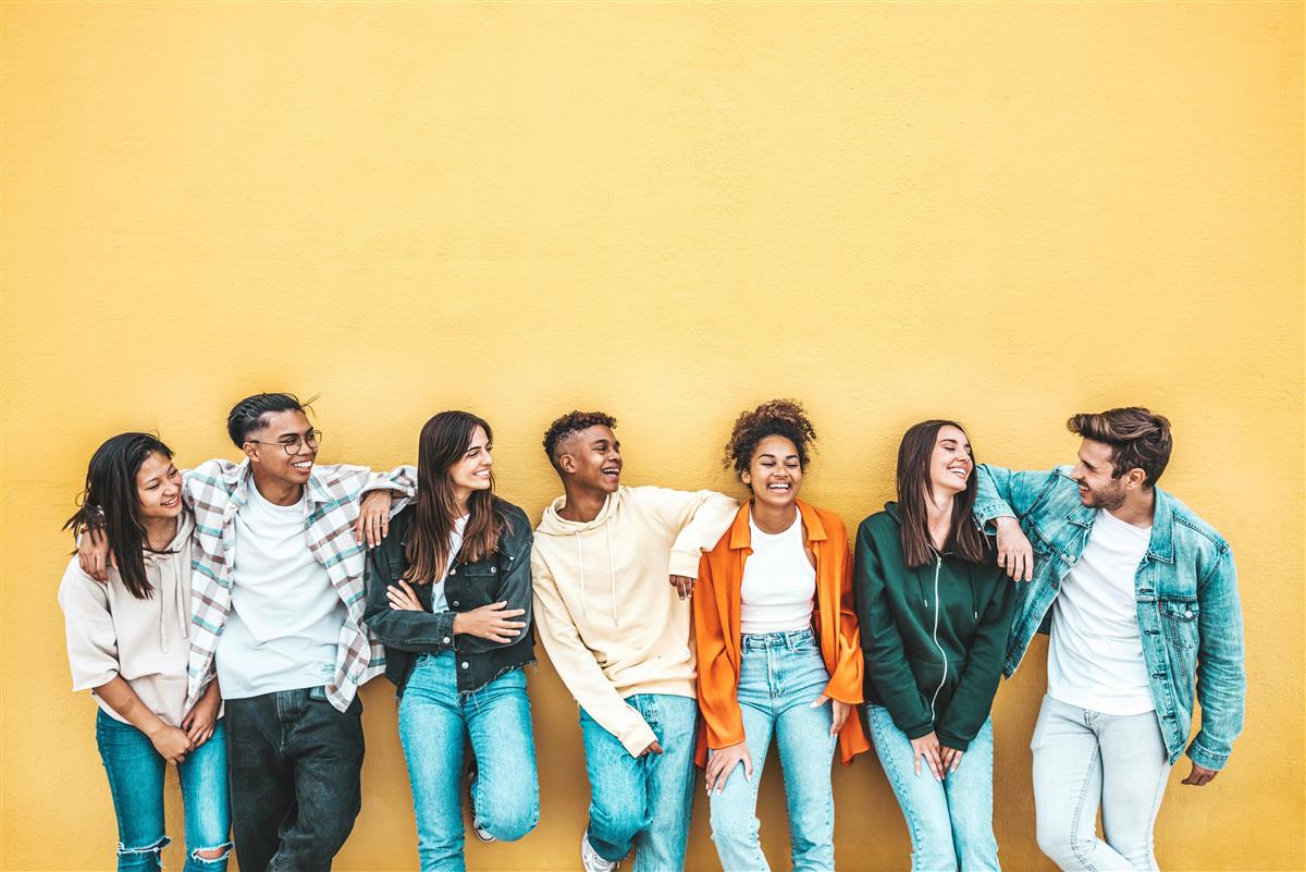 Unge mennesker som står sammen ved en vegg - Klikk for stort bilde Adobe stock